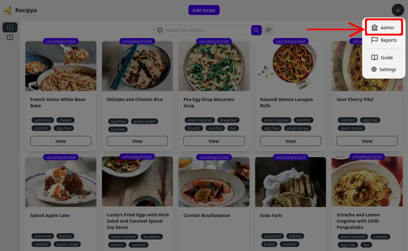 An administrator is defined as the initial user, typically the one who set up Recipya. Only the administrator can access the admin page.